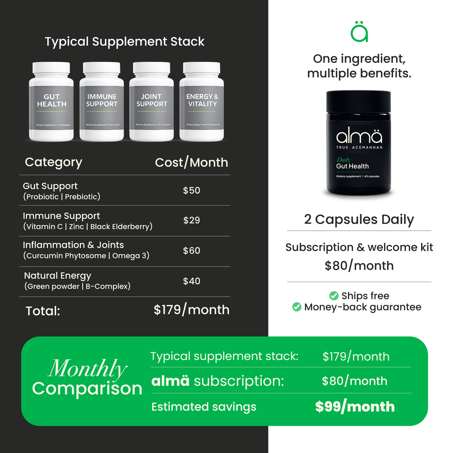 almä is ideal for people experiencing digestive discomfort, inconsistent bowel habits, bloating, low immunity, chronic inflammation, or anyone wanting a clean, plant-based daily wellness ritual that supports long-term gut and immune balance. Always speak to your doctor before trying a new supplement.