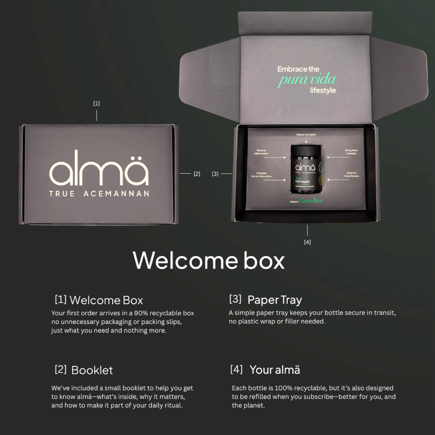 almä is corn-free, soy-free, gluten-free, and free from preservatives and fillers. It's non-GMO and vegan.