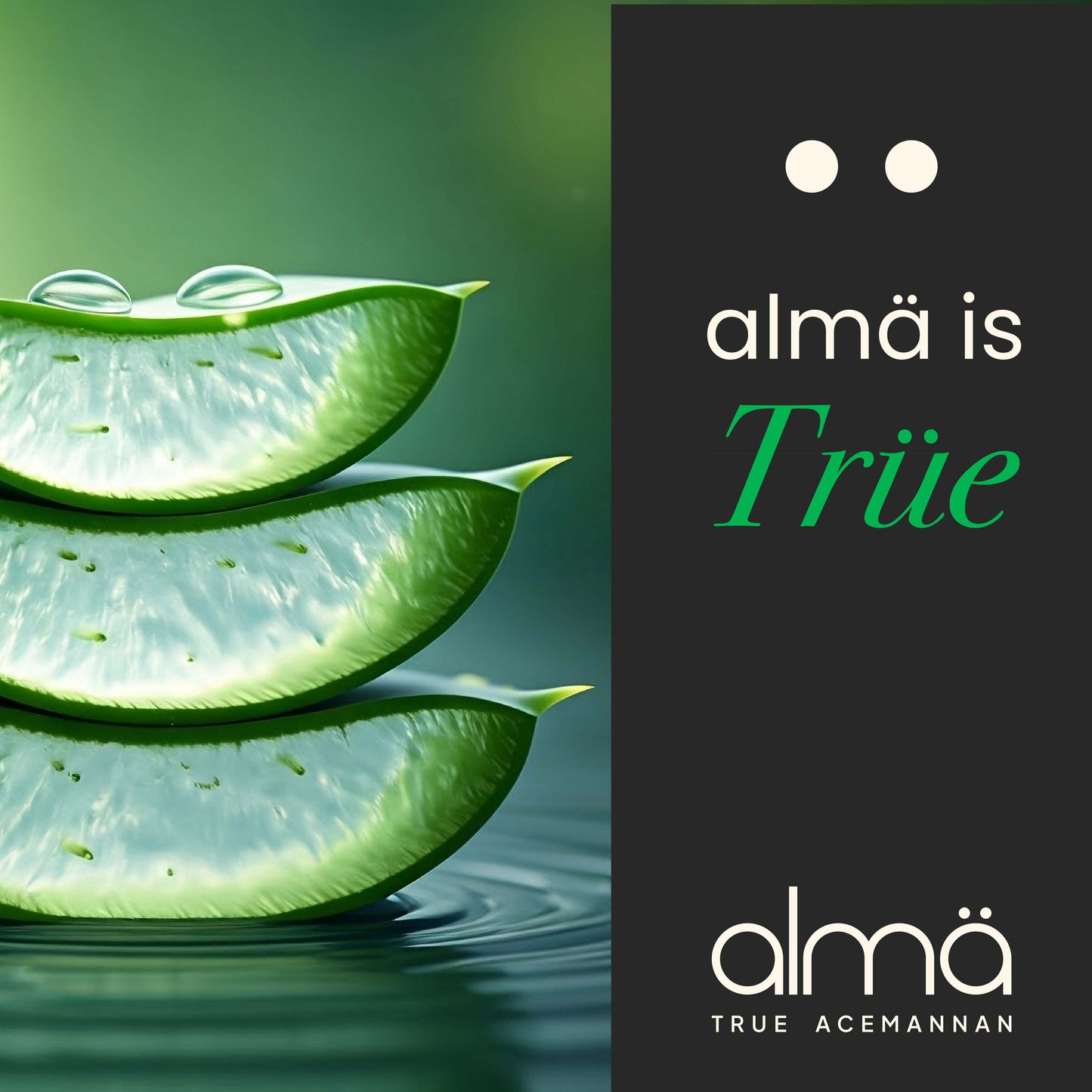 almä uses aloe grown in Costa Rica in nutrient-rich volcanic soil. The inner leaf gel is harvested carefully, the outer rind and bitter latex are removed, and the extract is stabilized through low-heat freeze-drying to protect delicate polysaccharides like True Acemannan.